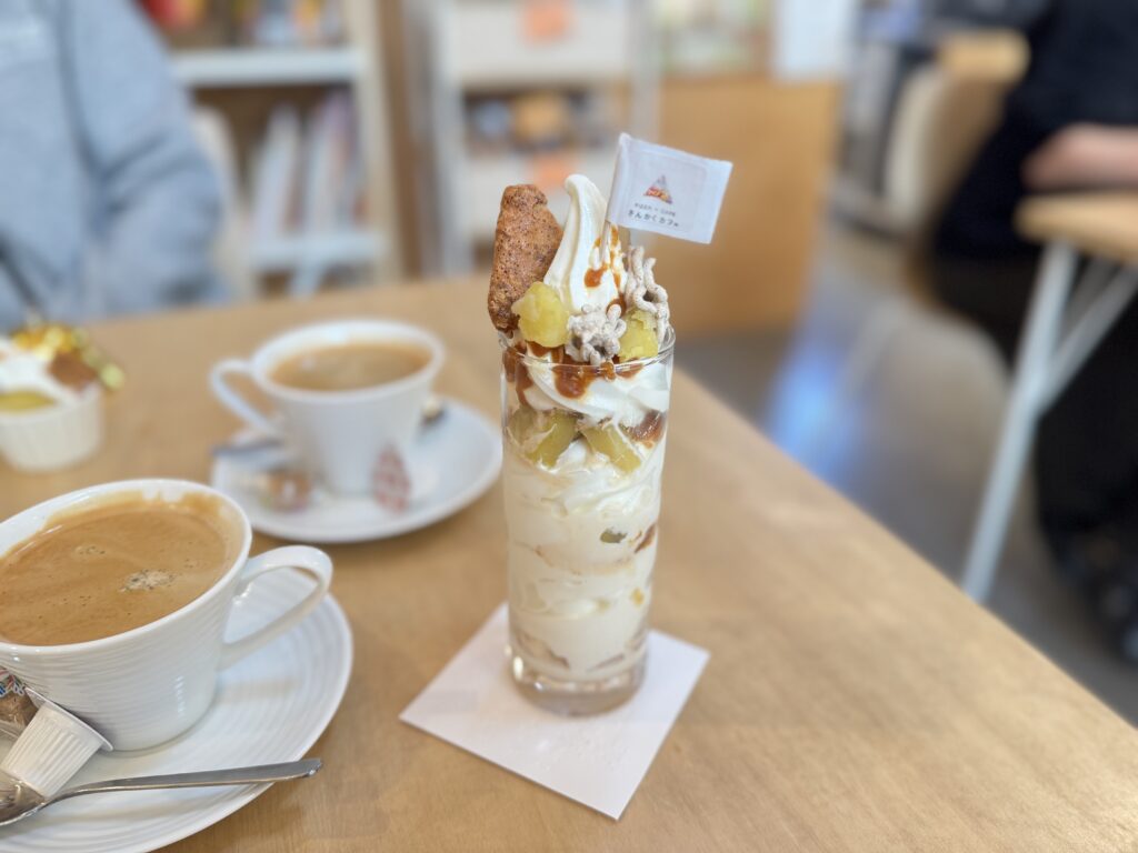 ランチだけでなく、カフェタイムのスイーツやドリンクも充実しています。お店名物の濃厚ソフトクリームを使用した、さんかくパフェや焙煎珈琲・バスクチーズケーキ・窯焼きマドレーヌなど、ママの“ひと息時間”にもぴったりのメニューが揃っていますよ♪