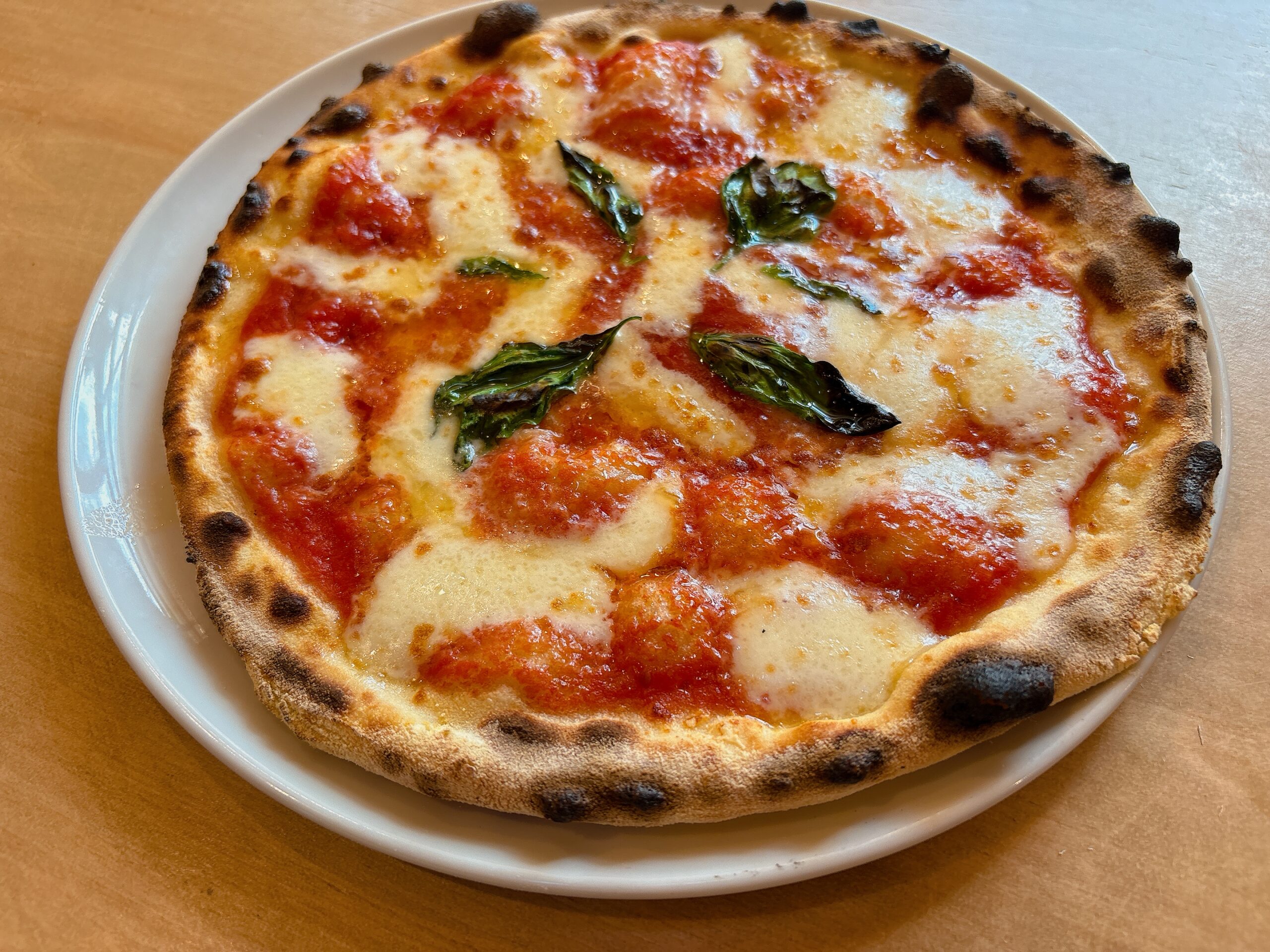 さんかくカフェでは、窯焼きの本格的なナポリピッツァをはじめとしたメニューが楽しめます。地元の食材にこだわったピッツァやパスタ、ドリンク、そして濃厚なソフトクリームなど、どれも味わい深くて満足感たっぷり。 この日は人気NO,1のマルゲリータを注文しました。