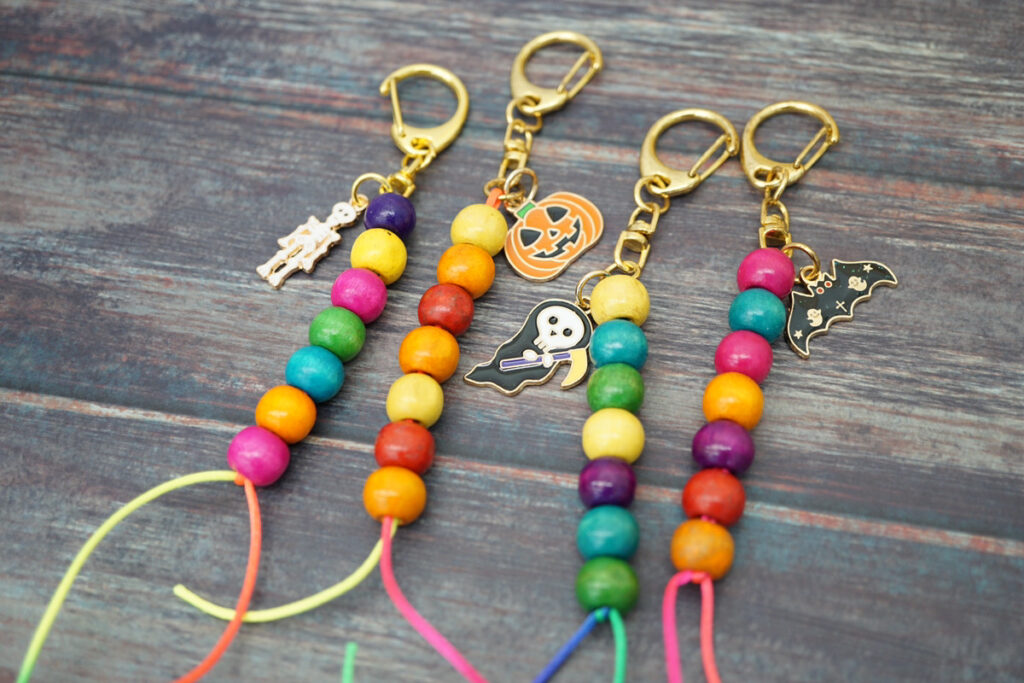 組み合わせ方は無限大!?好きな色やハロウィンパーツを選んでオリジナルキーホルダーを作ります。