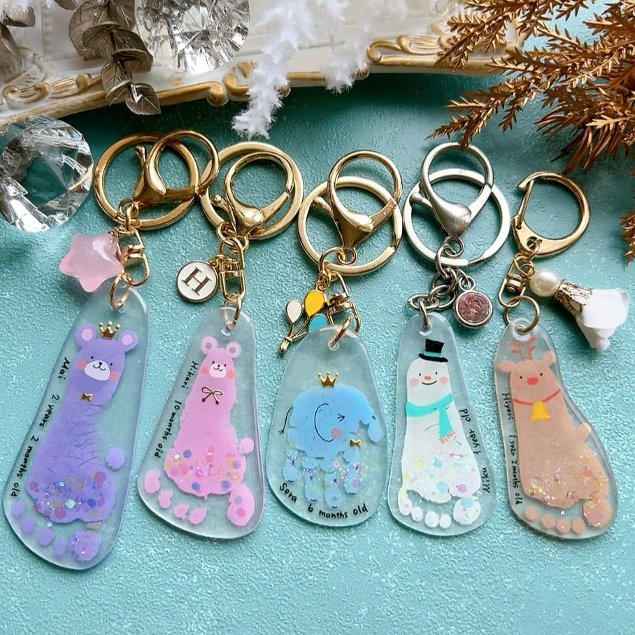 ✤レジン仕上げでぷっくり可愛い手形足形キーホルダーです。