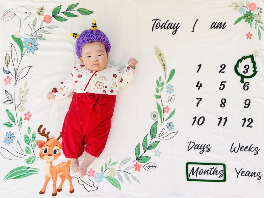 ごろんと寝転んだ赤ちゃんを、ママのスマホやカメラで自由に撮影できます。